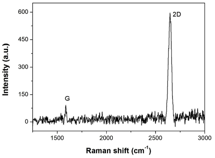 Raman spectra for the graphene/polyimide specimen, I2D/IG ≈8